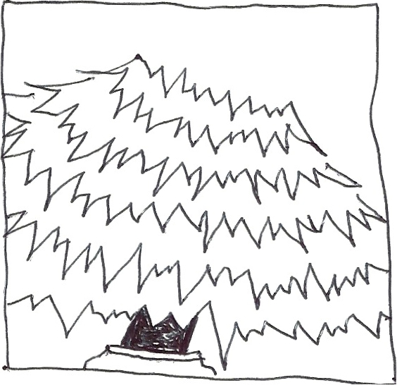 A couple of days ago Bandoliera-Saturnalia and I embarked on our annual holiday tree troll. This year we ran into a bit of a headwind due to the rest of the merry makers not fully embracing the spirit of sharing and buying up every last fricking frazier fir for miles. We finally ended up at a hardware store in the next county where according to the proprietor they had “at least 25 trees” in the lot. What he didn’t say was that if you stacked all of them on top of one another they’d barely reach Jareem Abdul-Jabaar’s crotch. After a good bit of deliberation we chose the least pathetic specimen whose shortcoming, as it were, was the absence of its top 3’. A trapezoidal tree!!! Nobody else has one of those. SOLD!